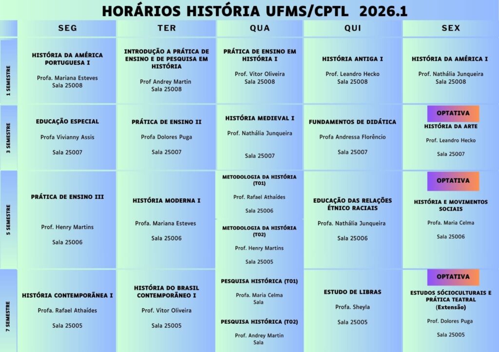Horário do Curso e Calendário Acadêmico CALENDÁRIO ACADÊMICO: https://prograd.ufms.br/calendario-academico/